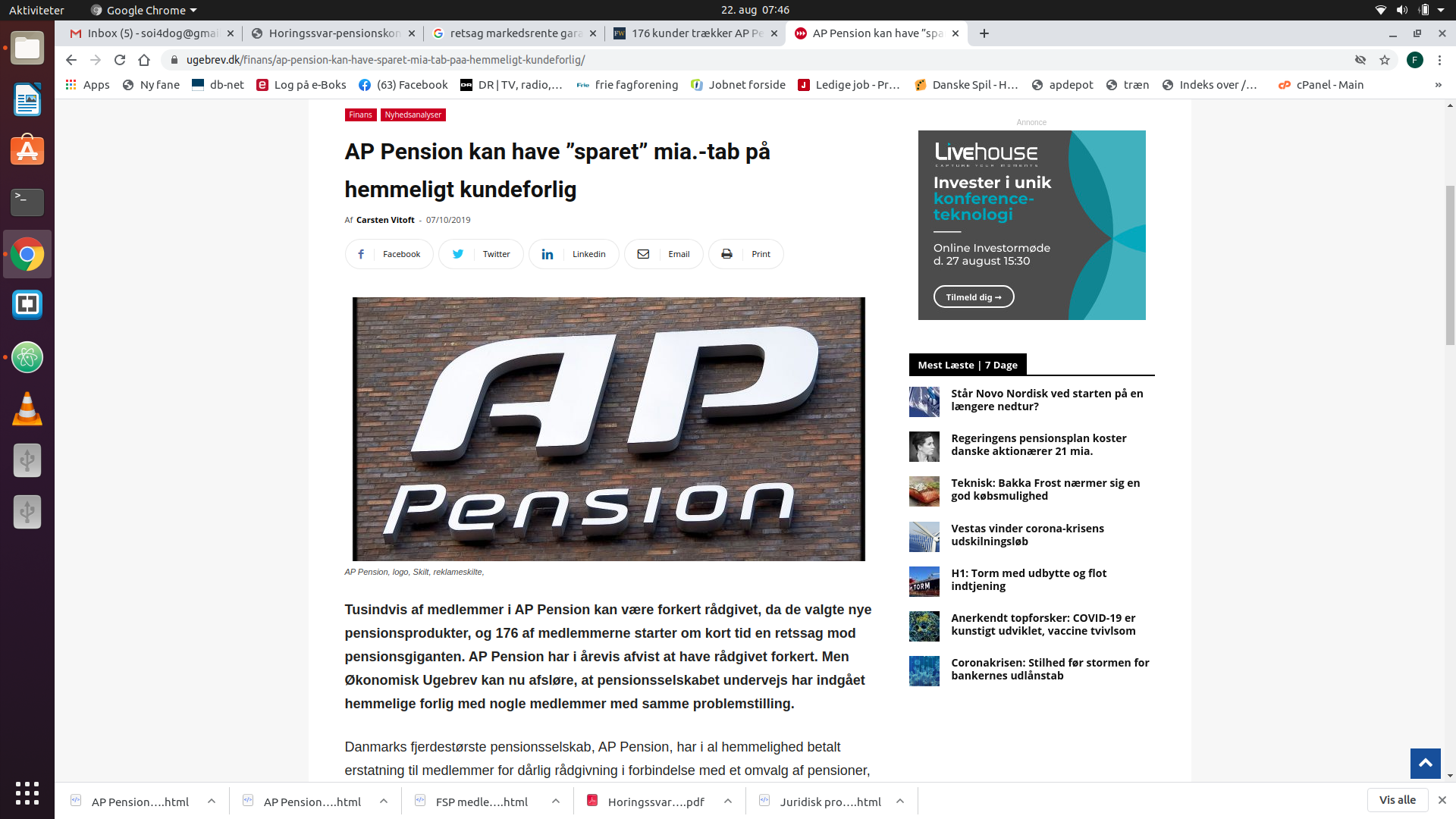 Nu har jeg, mine penge til 40%, præcedens og ikke mindst "Håne retten". AP Pension har stadigvæk "møgsager" i "klagenævnet", nemlig jeres.
